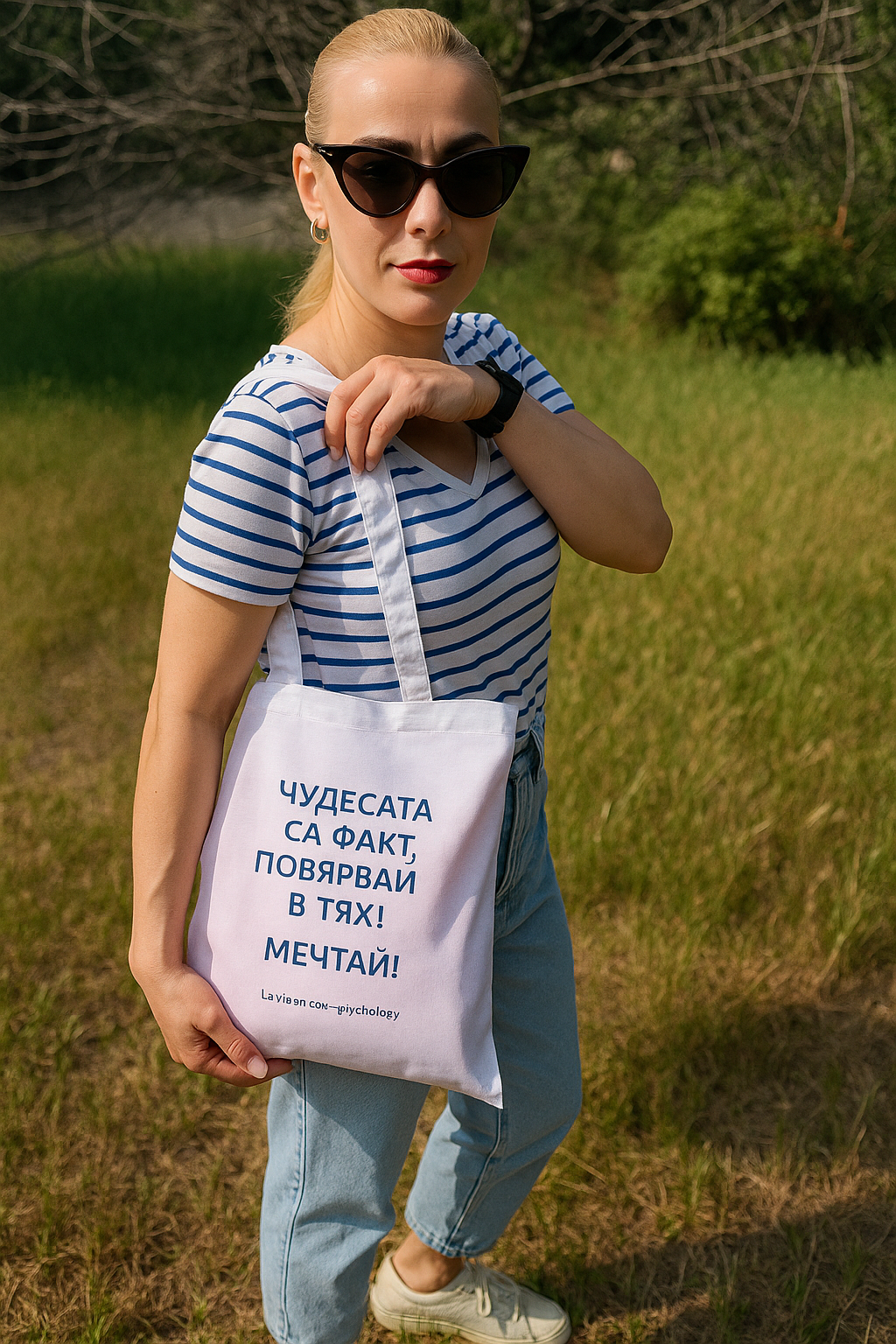 Избирай чантичка не просто по цвят, а по посланието, което резонира с теб в този момент. Може би днес ти трябва напомняне, че „Чудесата започват отвътре“, или пък покана към вътрешния свят с думите „Аз съм времето, в което се разгръщам.“